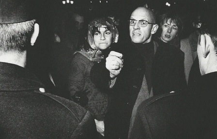 Foucault protesterar mot den följande repressionen (liksom flera andra franska lärare), men går också så långt att han låter studentradikaler använda hans hem för att gömma sig, trycka flygblad, hålla möten, etc. Senare på hösten '68 återvänder han till Paris och hamnar på universitetet i Vincennes i Paris utkant. Natten den 24 januari 1969 ockuperar flera studenter och några lärare universitetet, och Foucault var bland ockupanterna. "Den splitternya inredningen omvandlas till provisoriska barrikader. Tvåtusen poliser stormar byggnaden, flera av ockupanterna flyr upp på taket undan tårgasen, däribland Michel Foucault, som deltar i tumultet och stenkastningen -- iklädd svart sammetskostym!" (11 FM) Men det var först i samband med fängelserevolterna i Frankrike 1971 och bildandet av Groupe d'Information sur les Prisons som Foucault både teoretiskt och praktiskt kom att ägna sig åt maktproblematiken. Erfarenheterna från denna tiden kom att spela en betydande roll i skrivandet av Övervakning och straff. Det politiska arbetet består i undersökning och informationsspridning, närbesläktad med maoisternas undersökningar. Hörnqvist skriver att "Det sociala anseendet utnyttjas och förbrukas i en sådan utsträckning att en kommunistisk dagstidning skulle komma att bönfalla regeringen att sätta stopp för vad den betecknar som en 'fackförening för ligister'." (13 FM) Enligt Hörnqvist "fortsätter Foucault att resonera inom samma problematik" fram till årsskiftet 77/78 då han hamnar i både personlig och intellektuell kris. Perioden efteråt innebär, enligt Hörnqvist, "en återgång till traditionellt, liberalt perspektiv på maktutövningen." (21 FM)